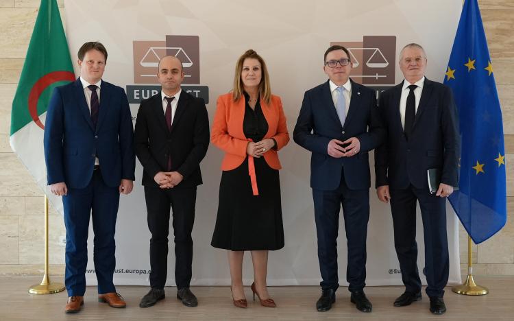 H.E. Ms Salima Abdelhak (middle), Ambassador of the People's Democratic Republic of Algeria, welcomed by Mr Ladislav Hamran, President of Eurojust, and Mr Virgil Constantin Ivan-Cucu, Team Leader of the EuroMed Justice project (right)