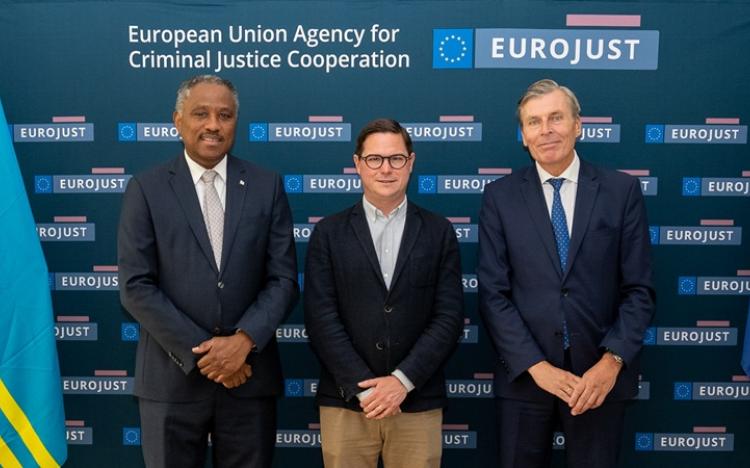 Mr Michael Schmid, President of Eurojust and Mr Alexander van Dam, National Member for the Netherlands, welcomed Mr Arthur Dowers, Minister of Justice of Aruba to the Agency’s headquarters.