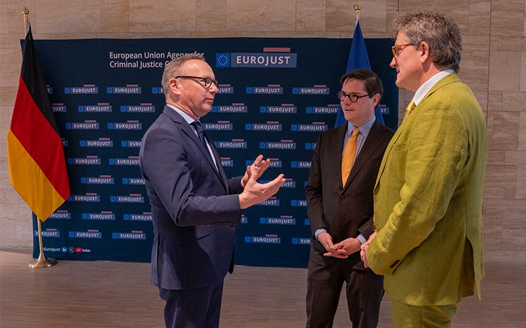 Eurojust President Michael Schmid and National Member for Germany Jan MacLean welcomed Mr Benjamin Limbach, Minister of Justice for North Rhine-Westphalia of the Federal Republic of Germany to the Agency’s headquarters in The Hague.