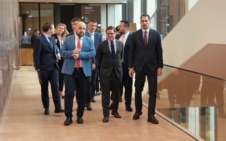 Mr. Bojan Bozovic, Minister of Justice (left) and Mr. Milorad Markovic, Supreme State Prosecutor, Montenegro (right) with Eurojust President Michael Schmid.