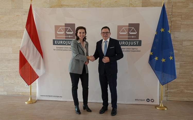 Ms Alma Zadić, Minister of Justice of Austria and Mr Ladislav Hamran, President of Eurojust
