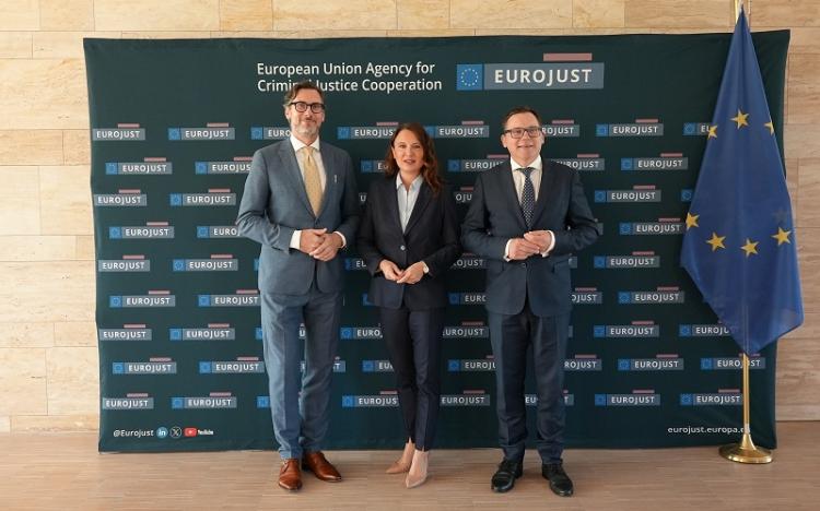 President Ladislav Hamran and Vice-President Bostjan Skrlec welcome Ms Nina Gregori, Executive Director of the European Union Agency for Asylum to Eurojust headquarters.
