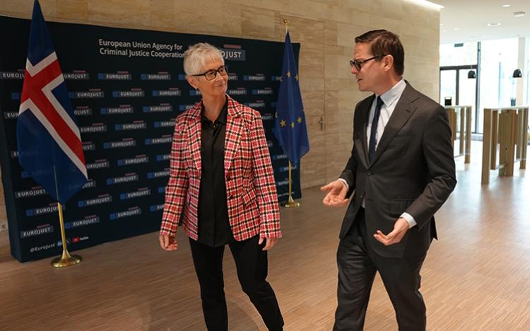Ms Sigríður J. Friðjónsdóttir, Director of Public Prosecutions of Iceland with Eurojust President Michael Schmid.