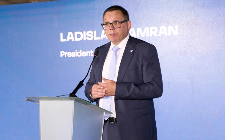 President Hamran gives opening remarks at the United for Justice conference in Kyiv