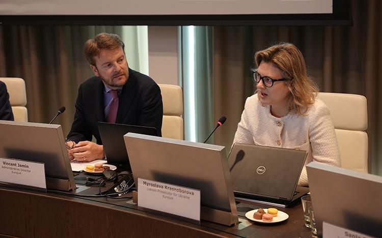 The delegation met with Eurojust experts, who presented the Agency’s work in response to the war in Ukraine. This included presentations on the Joint Investigation Team on war crimes, the Core International Crimes Evidence Database, and the International Centre for the Prosecution of the Crime of Aggression.
