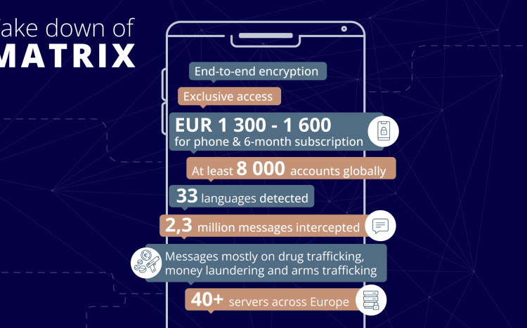 MATRIX, a messaging service made by criminals for criminals, was first discovered by Dutch authorities on the phone of a criminal convicted for the murder of a Dutch journalist in 2021. A large-scale investigation into the messaging service was initiated.