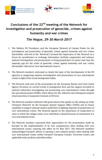 [EN] Conclusions of the 22nd meeting of the Genocide Network, 29-30 March 2017