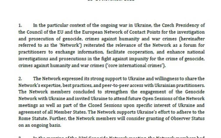 Invitation to Ukraine to attend future Genocide Network meetings and supports to adhere to the Rome Statute