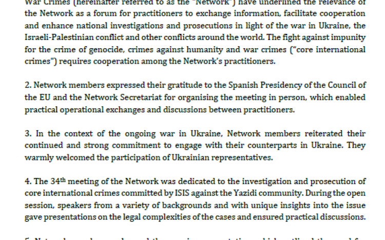 Conclusions of the 34th Meeting of the Network for Investigation and Prosecution of Genocide, Crimes against Humanity and War Crimes