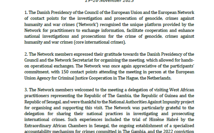 - Updates from Genocide Prosecution Network Secretariat and National Authorities Against Impunity project