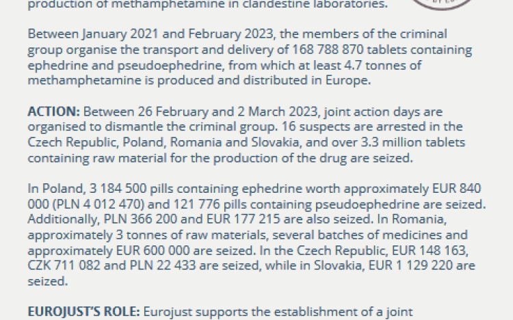 Crackdown on criminal network that produced and distributed methamphetamine in Europe