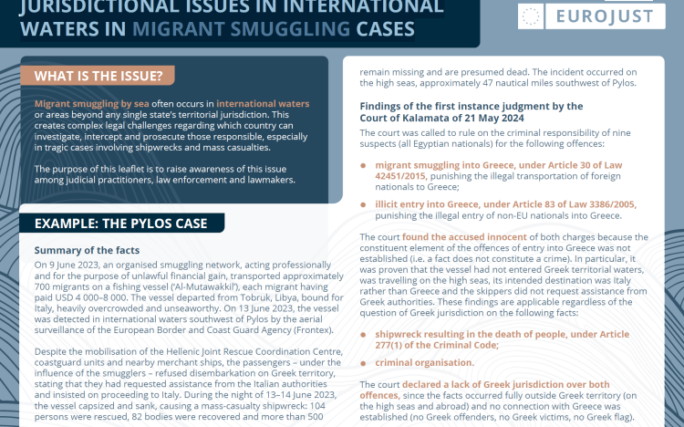 Migrant smuggling by sea often occurs in international waters or areas beyond any single state’s territorial jurisdiction. This creates complex legal challenges regarding which country can investigate, intercept and prosecute those responsible, especially in tragic cases involving shipwrecks and mass casualties. The purpose of this leaflet is to raise awareness of this issue among judicial practitioners, law enforcement and lawmakers.