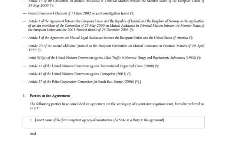 Consolidated text of the model agreement on the establishment of a Joint Investigation Team, following the approval of the Council Resolution of 22 December 2021 on a revised Appendix I (OJ C 44, 28.1.2022, p. 1.) 2022/C 44/02